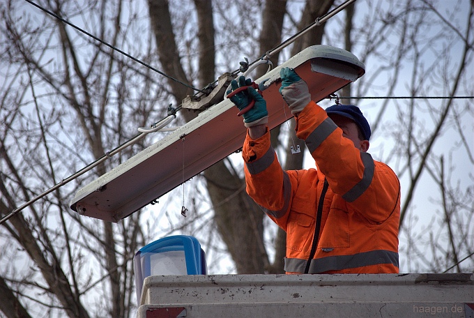 Die farbige Gestaltung von vorhandenen Straßenbeleuchtungen...