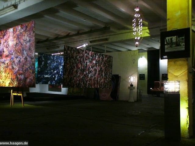 Die AThierLIER 2000 - 'Basisatmosphäre' [as usual] in Mike und Stefan's Atelierbereichen mit Lichtobjekten von Thomas Haagen