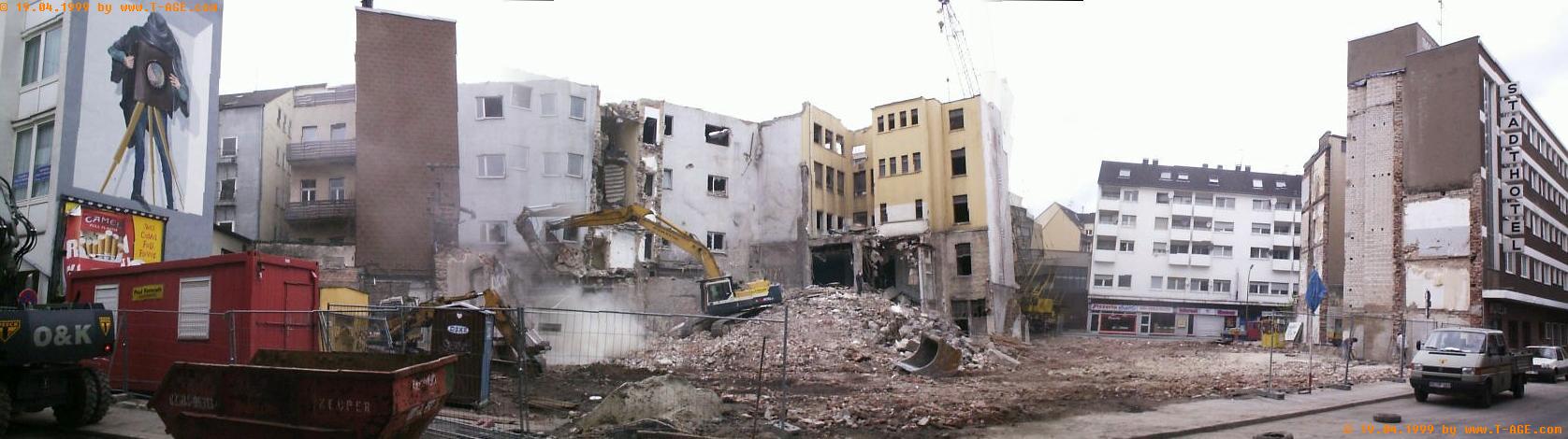 Abriß der alten Gebäude am 18.04.1999 von der Ludwigstraße