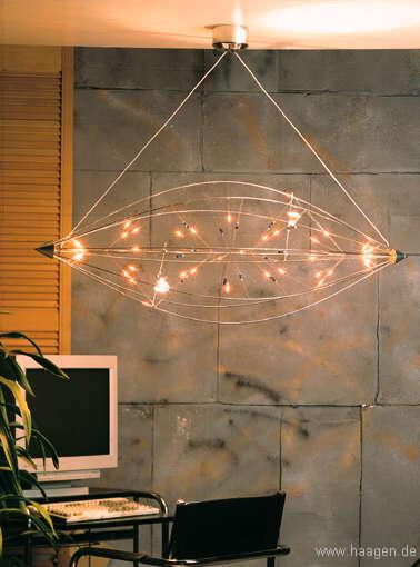 der Deckenabhängung ist individuell einstellbar durch Verstellung der zwei Kabelzuführungen am Trafogehäuse. Sonderlängen sind möglich; bitte extra angeben. Ersatzlampen liegen dem Objekt